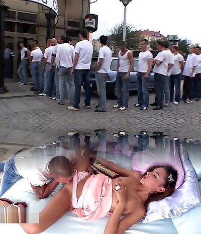 White Dress Bukkake Orgy: Exploding Cum Fiesta in Public!