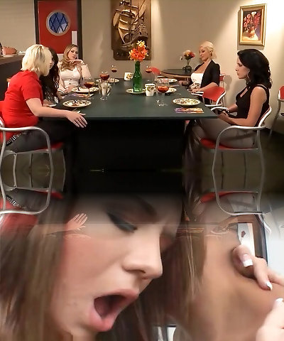 Pussy-Licking Cunnilingus Orgy: Four Horny Women Enjoy Wine and Sex in Public Eating House!