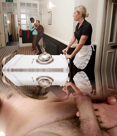 White Hands Stroking Hard Black Dick - Horny Maid Seduces Hotel Guest