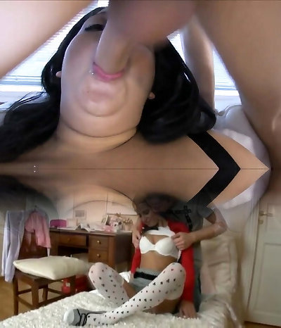 A Busty French Maid's Cum-Filled Lingerie Blowjob