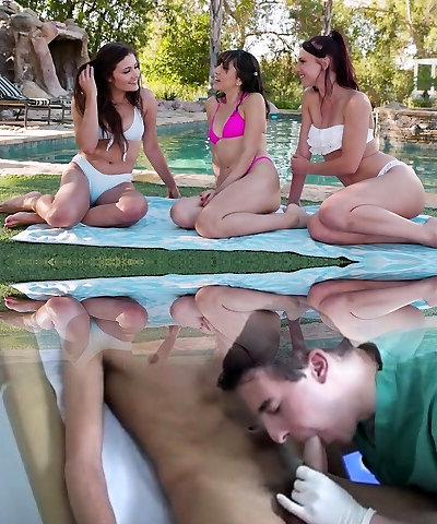 Three Babes Get Oral After Pool Fun