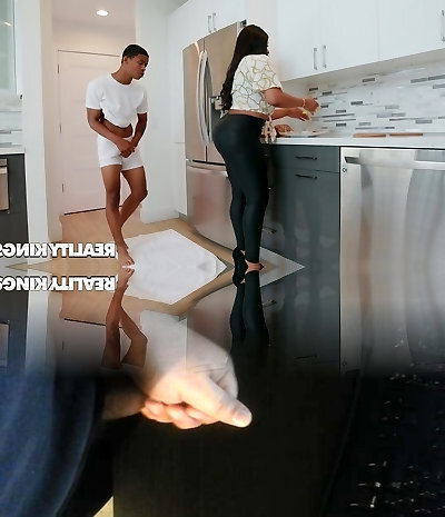 Young Man Gets His Cock Hard For Milf's Big Fake Tits And Fishnets!
