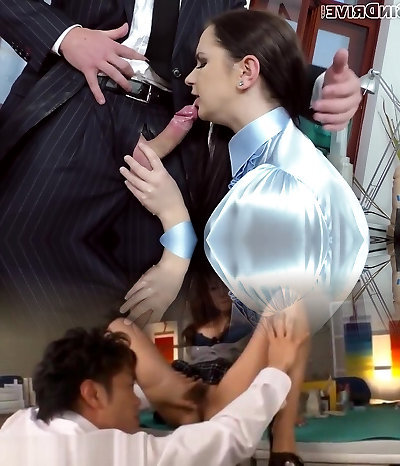 Sexy Japanese Babe Gives Blowjob in the Office While Reading Files!